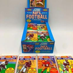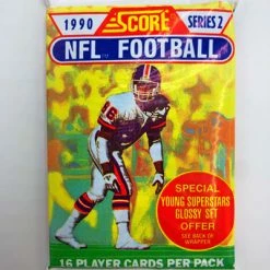 Ungeöffnetes Päckchen NFL Trading Cards, original aus dem Jahr 1990. Legenden wie Joe Montana, Dan Marino oder Emmitt Smith spielten in der NFL und die New York Giants besiegten die Buffalo Bills am Ende der Saison im Super Bowl XXV. Diese Trading Cards wurden damals von der Firma Optigraphics Corp. für die Marke SCORE hergestellt und sind offiziell von der NFL lizensiert. Weitere Infos siehe unten.