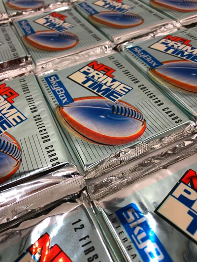 Ungeöffnetes Päckchen NFL Trading Cards, original aus dem Jahr 1992. Legenden wie Joe Montana, Dan Marino oder Troy Aikman spielten in der NFL und die Dallas Cowboys besiegten die Buffalo Bills am Ende der Saison im Super Bowl XXVII. Diese Trading Cards wurden von der Firma Skybox International hergestellt und sind offiziell von der NFL lizensiert. Weitere Infos siehe unten.
