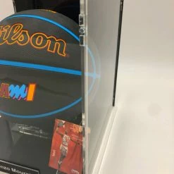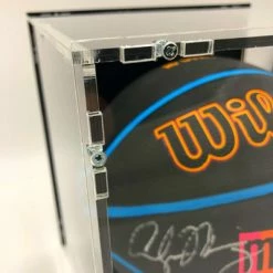 - Der Basketball kommt mit einem Basketball Showcase zu Ausstellungszwecken; das Showcase ist von massiver und robuster Qualität. Das Glas ist aus Acryl, der Boden und die Rückwand sind schwarz gehalten, um den Basketball ideal zur Geltung zu bringen. Das Showcase ist wertig verschraubt und schließt komplett. Der Ballhalter ist ebenfalls von massiver Qualität. Das Name Plate an der Vorderseite ist aus Aluminium.