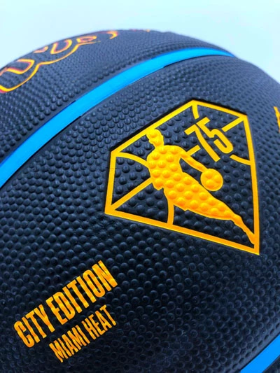 ALONZO MOURNING Basketball Showcase (Miami Heat) Signierter Basketball, City Edition Miami Heat