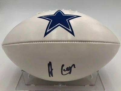 Signierter Football mit Logo der Dallas Cowboys von Wilson. Autogramm von Amari Cooper auf dem Football. Alle NFL Autogramme sind authentifiziert und verfügen über eine Seriennummer. Weitere Infos siehe unten.