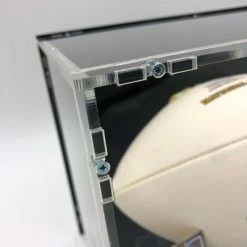 - Der Football kommt mit einem Football Showcase zu Ausstellungszwecken; das Showcase ist von massiver und robuster Qualität. Das Glas ist aus Acryl, der Boden und die Rückwand sind schwarz gehalten, um den Football ideal zur Geltung zu bringen. Das Showcase ist wertig verschraubt und schließt komplett. Der Ballhalter ist ebenfalls von massiver Qualität. Das Name Plate an der Vorderseite ist aus Aluminium.