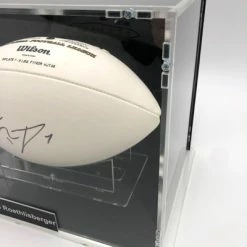 Football Showcase aus Sicherheitsglas. Signierter Football mit NFL Logo von Wilson im Case. Autogramm von Ben Roethlisberger auf dem Football. Alle NFL Autogramme sind authentifiziert und verfĂĽgen ĂĽber eine Seriennummer. Weitere Infos siehe unten.