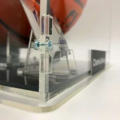 - Der Basketball kommt mit einem Basketball Showcase zu Ausstellungszwecken; das Showcase ist von massiver und robuster Qualität. Das Glas ist aus Acryl, der Boden und die Rückwand sind schwarz gehalten, um den Basketball ideal zur Geltung zu bringen. Das Showcase ist wertig verschraubt und schließt komplett. Der Ballhalter ist ebenfalls von massiver Qualität. Das Name Plate an der Vorderseite ist aus Aluminium.