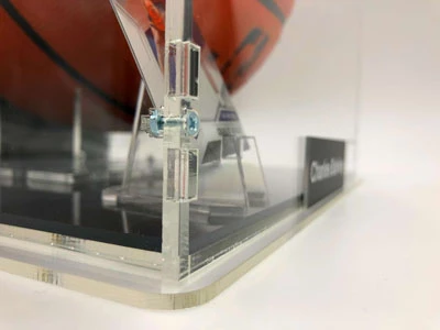- Der Basketball kommt mit einem Basketball Showcase zu Ausstellungszwecken; das Showcase ist von massiver und robuster Qualität. Das Glas ist aus Acryl, der Boden und die Rückwand sind schwarz gehalten, um den Basketball ideal zur Geltung zu bringen. Das Showcase ist wertig verschraubt und schließt komplett. Der Ballhalter ist ebenfalls von massiver Qualität. Das Name Plate an der Vorderseite ist aus Aluminium.