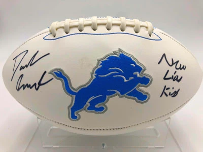 Signierter Football mit Logo der Detroit Lions von Wilson. Autogramm von D’Andre Swift auf dem Football. Alle NFL Autogramme sind authentifiziert und verfügen über eine Seriennummer. Weitere Infos siehe unten.