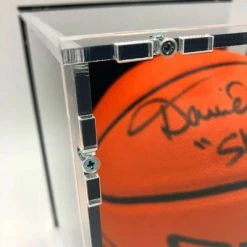 - Der Basketball kommt mit einem Basketball Showcase zu Ausstellungszwecken; das Showcase ist von massiver und robuster Qualität. Das Glas ist aus Acryl, der Boden und die Rückwand sind schwarz gehalten, um den Basketball ideal zur Geltung zu bringen. Das Showcase ist wertig verschraubt und schließt komplett. Der Ballhalter ist ebenfalls von massiver Qualität. Das Name Plate an der Vorderseite ist aus Aluminium.