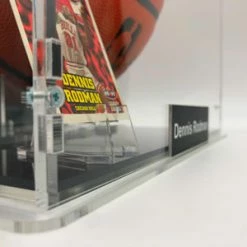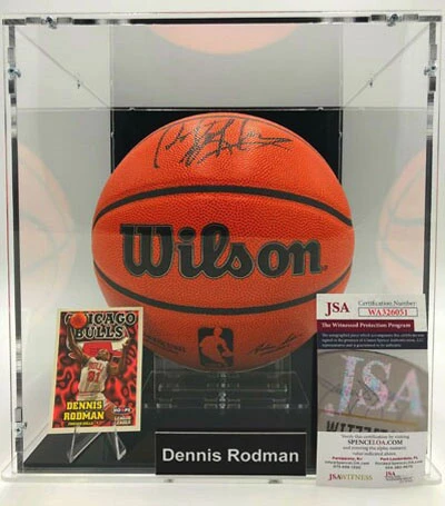 Basketball Showcase aus Sicherheitsglas. Signierter Basketball mit NBA Logo von Wilson im Case. Autogramm von Dennis Rodman auf dem Basketball. Alle NBA Autogramme sind authentifiziert und verfĂĽgen ĂĽber eine Seriennummer. Weitere Infos siehe unten.