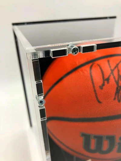- Der Basketball kommt mit einem Basketball Showcase zu Ausstellungszwecken; das Showcase ist von massiver und robuster Qualität. Das Glas ist aus Acryl, der Boden und die Rückwand sind schwarz gehalten, um den Basketball ideal zur Geltung zu bringen. Das Showcase ist wertig verschraubt und schließt komplett. Der Ballhalter ist ebenfalls von massiver Qualität. Das Name Plate an der Vorderseite ist aus Aluminium.