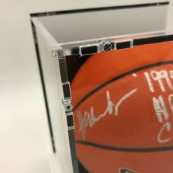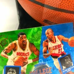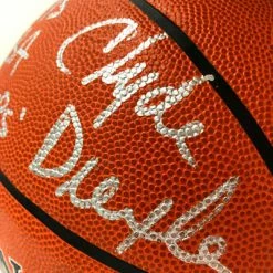 HAKEEM OLAJUWON & CLYDE DREXLER Basketball Showcase (Houston Rockets) Signierter Basketball, Super Tack Pro