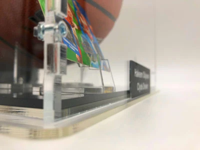 - Der Basketball kommt mit einem Basketball Showcase zu Ausstellungszwecken; das Showcase ist von massiver und robuster Qualität. Das Glas ist aus Acryl, der Boden und die Rückwand sind schwarz gehalten, um den Basketball ideal zur Geltung zu bringen. Das Showcase ist wertig verschraubt und schließt komplett. Der Ballhalter ist ebenfalls von massiver Qualität. Das Name Plate an der Vorderseite ist aus Aluminium.