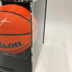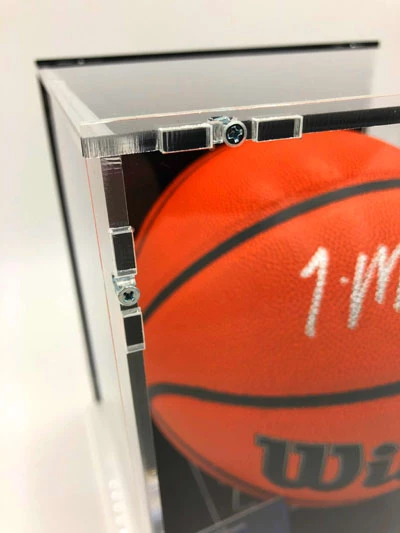 - Der Basketball kommt mit einem Basketball Showcase zu Ausstellungszwecken; das Showcase ist von massiver und robuster Qualität. Das Glas ist aus Acryl, der Boden und die Rückwand sind schwarz gehalten, um den Basketball ideal zur Geltung zu bringen. Das Showcase ist wertig verschraubt und schließt komplett. Der Ballhalter ist ebenfalls von massiver Qualität. Das Name Plate an der Vorderseite ist aus Aluminium.