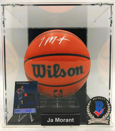 Basketball Showcase aus Sicherheitsglas. Signierter Basketball mit NBA Logo von Wilson im Case. Autogramm von Ja Morant auf dem Basketball. Alle NBA Autogramme sind authentifiziert und verfĂĽgen ĂĽber eine Seriennummer. Weitere Infos siehe unten.