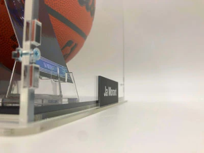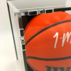 - Der Basketball kommt mit einem Basketball Showcase zu Ausstellungszwecken; das Showcase ist von massiver und robuster Qualität. Das Glas ist aus Acryl, der Boden und die Rückwand sind schwarz gehalten, um den Basketball ideal zur Geltung zu bringen. Das Showcase ist wertig verschraubt und schließt komplett. Der Ballhalter ist ebenfalls von massiver Qualität. Das Name Plate an der Vorderseite ist aus Aluminium.