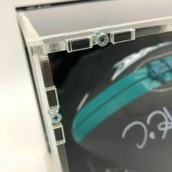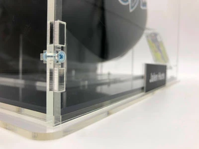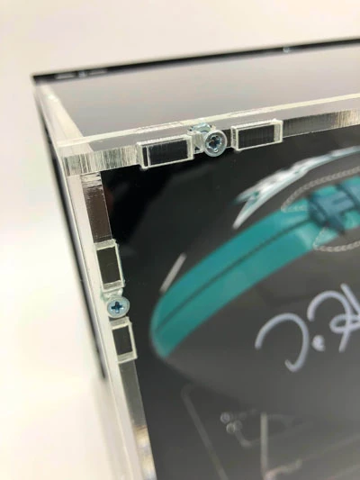 - Der Football kommt mit einem Football Showcase zu Ausstellungszwecken; das Showcase ist von massiver und robuster Qualität. Das Glas ist aus Acryl, der Boden und die Rückwand sind schwarz gehalten, um den Football ideal zur Geltung zu bringen. Das Showcase ist wertig verschraubt und schließt komplett. Der Ballhalter ist ebenfalls von massiver Qualität. Das Name Plate an der Vorderseite ist aus Aluminium.
