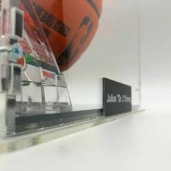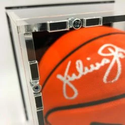 Basketball Showcase aus Sicherheitsglas. Signierter Basketball mit NBA Logo von Spalding im Case. Autogramm von Julius Erving auf dem Basketball. Alle NBA Autogramme sind authentifiziert und verfügen über eine Seriennummer. Weitere Infos siehe unten.