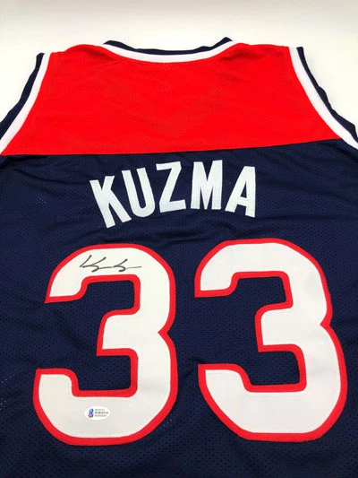 Signiertes Trikot im Basketball Style mit Autogramm von Kyle Kuzma. Alle NBA Autogramme sind authentifiziert und verfügen über eine Seriennummer. Weitere Infos siehe unten.