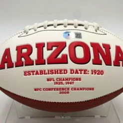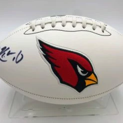 Football Showcase aus Sicherheitsglas. Signierter Football mit Logo der Arizona Cardinals von Jarden Sports im Case. Autogramm von Kyler Murray auf dem Football. Alle NFL Autogramme sind authentifiziert und verfĂĽgen ĂĽber eine Seriennummer. Weitere Infos siehe unten.