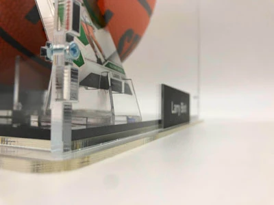 - Der Basketball kommt mit einem Basketball Showcase zu Ausstellungszwecken; das Showcase ist von massiver und robuster Qualität. Das Glas ist aus Acryl, der Boden und die Rückwand sind schwarz gehalten, um den Basketball ideal zur Geltung zu bringen. Das Showcase ist wertig verschraubt und schließt komplett. Der Ballhalter ist ebenfalls von massiver Qualität. Das Name Plate an der Vorderseite ist aus Aluminium.