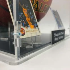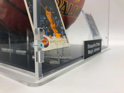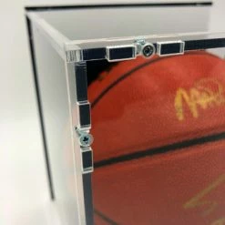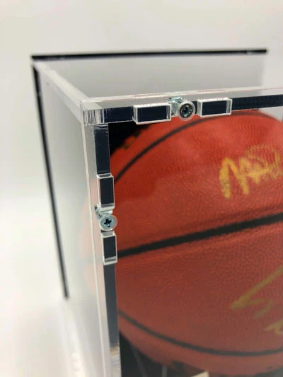 - Der Basketball kommt mit einem Basketball Showcase zu Ausstellungszwecken; das Showcase ist von massiver und robuster Qualität. Das Glas ist aus Acryl, der Boden und die Rückwand sind schwarz gehalten, um den Basketball ideal zur Geltung zu bringen. Das Showcase ist wertig verschraubt und schließt komplett. Der Ballhalter ist ebenfalls von massiver Qualität. Das Name Plate an der Vorderseite ist aus Aluminium.