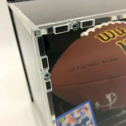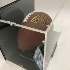 - Der Football kommt mit einem Football Showcase zu Ausstellungszwecken; das Showcase ist von massiver und robuster Qualität. Das Glas ist aus Acryl, der Boden und die Rückwand sind schwarz gehalten, um den Football ideal zur Geltung zu bringen. Das Showcase ist wertig verschraubt und schließt komplett. Der Ballhalter ist ebenfalls von massiver Qualität. Das Name Plate an der Vorderseite ist aus Aluminium.