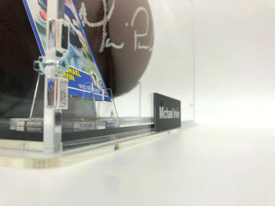 Football Showcase aus Sicherheitsglas. Signierter Football mit NFL Logo von Wilson im Case. Autogramm von Michael Irvin auf dem Football. Alle NFL Autogramme sind authentifiziert und verfĂĽgen ĂĽber eine Seriennummer. Weitere Infos siehe unten.