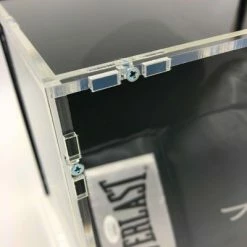 - Die Boxhandschuhe kommen mit einem Boxing Showcase zu Ausstellungszwecken; das Showcase ist von massiver und robuster Qualität. Das Glas ist aus Acryl, der Boden und die Rückwand sind schwarz gehalten, um die Boxhandschuhe ideal zur Geltung zu bringen. Das Showcase ist wertig verschraubt und schließt komplett. Das Name Plate an der Vorderseite ist aus Aluminium.