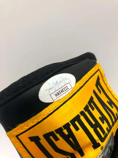 - Alle signierten Boxhandschuhe werden von einem der marktführenden US Authenticator verifiziert und kommen mit seriennummerierten Sicherheitsmerkmalen, die die Echtheit der Autogramme bestätigen (Certificate of Authenticity und/oder Sicherheitshologramm). Authenticator von Autogrammen von Boxern sind bei Memorabilia Germany ausschließlich: Beckett, James Spence Authentication, PSA/DNA oder Fanatics. Mehr Infos zum wichtigen Thema Authentifizierung findet ihr hier.