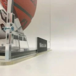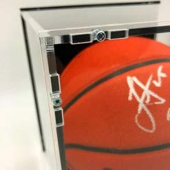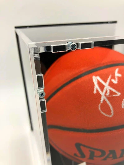 - Der Basketball kommt mit einem Basketball Showcase zu Ausstellungszwecken; das Showcase ist von massiver und robuster Qualität. Das Glas ist aus Acryl, der Boden und die Rückwand sind schwarz gehalten, um den Basketball ideal zur Geltung zu bringen. Das Showcase ist wertig verschraubt und schließt komplett. Der Ballhalter ist ebenfalls von massiver Qualität. Das Name Plate an der Vorderseite ist aus Aluminium.