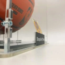 - Der Basketball kommt mit einem Basketball Showcase zu Ausstellungszwecken; das Showcase ist von massiver und robuster Qualität. Das Glas ist aus Acryl, der Boden und die Rückwand sind schwarz gehalten, um den Basketball ideal zur Geltung zu bringen. Das Showcase ist wertig verschraubt und schließt komplett. Der Ballhalter ist ebenfalls von massiver Qualität. Das Name Plate an der Vorderseite ist aus Aluminium.