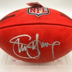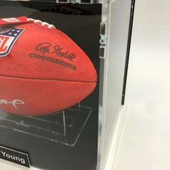 Football Showcase aus Sicherheitsglas. Signierter Football mit NFL Logo von Wilson im Case. Autogramm von Steve Young auf dem Football. Alle NFL Autogramme sind authentifiziert und verfĂĽgen ĂĽber eine Seriennummer. Weitere Infos siehe unten.