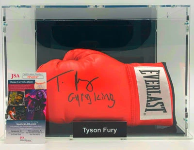 Boxing Showcase aus Sicherheitsglas. Signierter Boxhandschuh von Everlast im Case. Autogramm von Tyson Fury auf dem Boxhandschuh. Alle Autogramme von Boxern sind authentifiziert und verfügen über eine Seriennummer. Weitere Infos siehe unten.